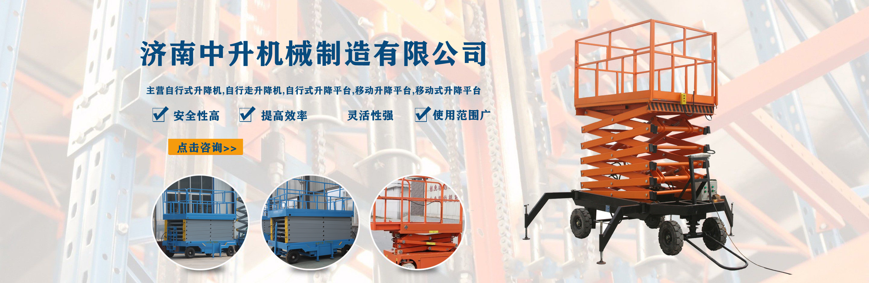 濟南中升機械制造有限公司主營自行式升降機,自行走升降機,自行式升降平臺,移動升降平臺,移動式升降平臺等產(chǎn)品,產(chǎn)品廣泛用于廠房維護、工業(yè)安裝、設(shè)備檢修、物業(yè)管理、倉庫、航空、機場、港口、車站、加油站、體育場、展覽館等多種行業(yè)和場所, 公司設(shè)備精良、工藝合理、檢測手段齊全,技術(shù)力量充足,公司創(chuàng)立伊始即本著“專注、專心”的經(jīng)營理念,依托技術(shù)團隊優(yōu)勢和設(shè)備硬件保障,全力打造良心的升降平臺企業(yè)。 我公司始終以“品質(zhì)為本,服務(wù)至上”作為企業(yè)宗旨。只要你訂購了我公司的產(chǎn)品,無論你身處何方,我們都會及時派出技術(shù)人員為你服務(wù)!...